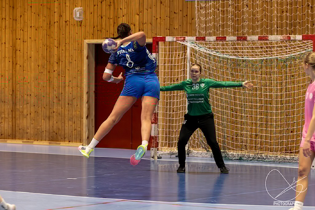 Andre omgang spelar vi betre, og det er jamnt på 19-19. Leonora spelar heile kampen her og, og set 6 mål!
